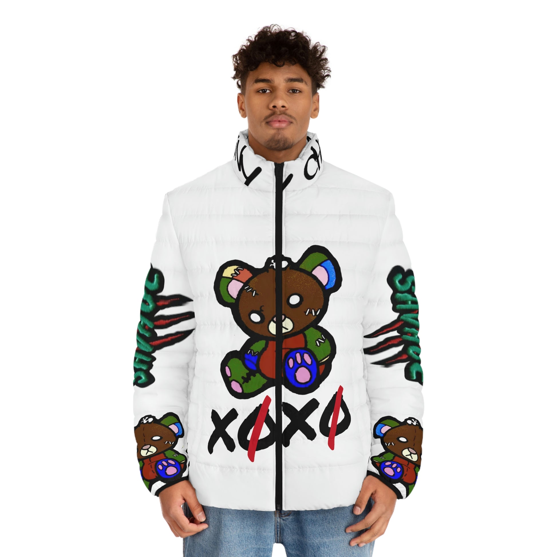 MENS SIZES - A custom puffer jacket is a grade-A upgrade to any wardrobe. This one comes with a stand-up collar, quilted lining, black cuff lining, and two spacious side pockets for added practicality. Each jacket is lightweight and super soft to the touch. Choose between two zipper color choices: black or dark blue.